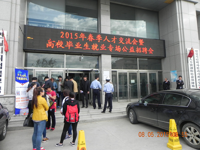 为深入实施离校未就业高校毕业生就业促进计划,开展2015年民营企业招聘周活动,进一步完善用人单位与大中专毕业生及其他各类人才的交流平台,延吉市人社局于2015年5月8日举办“2015年春季人才交流会暨高校毕业生就业专场公益招聘会”。