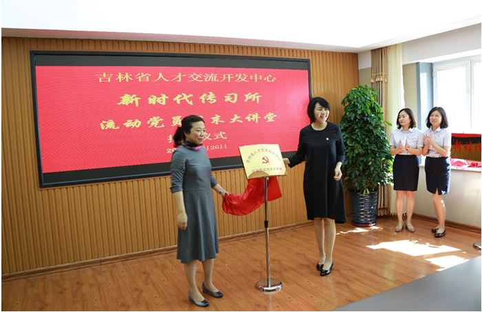 吉林省直机关工委组织部部长张玉文和吉林省人社厅直属机关党委专职副书记王欢为吉林省人才交流开发中心“流动党员周末大讲堂”揭牌。