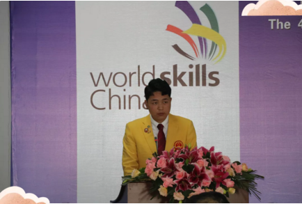 参赛选手蔺永康同学也发表了获奖感言,认为自己今天所取得的成绩实属不易,这离不开所有老师的呕心沥血和专家教练的辛苦付出,并勉励在座同学要明确自己的发展目标,努力专研技术,走出一条属于自己的技能成才之路,实现技能筑梦、技能强国的心愿。