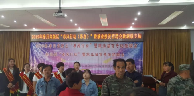 2019年4月22日净月区新湖镇为贯彻落实长春市《关于开展2019年“春风行动”的通知》精神,在新湖镇农校举办“暮春-春风行动”暨就业扶贫专场招聘活动,整体活动现场共发布司机、服务员、技术员、财务、行政文员等各类招聘信息500余个,本次活动共吸引全镇近200名求职农民参加。