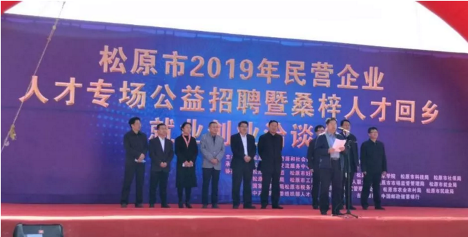 近日,由松原市人力资源和社会保障局和松原市工业和信息化局联合主办,松原市人才交流服务中心承办的“松原市2019年民营企业人才专场公益招聘暨桑梓人才回乡就业创业洽谈会”在市委广场举行。会议由松原市政府副秘书长王国臣主持,副市长邢树君进行了开幕式讲话,市人社局局长王相忠、市工业和信息化局局长李文江、市人才交流服务中心主任张子产和各协办单位领导参加了招聘会。