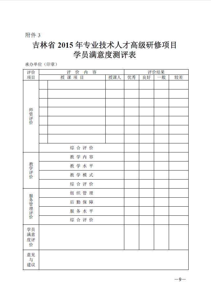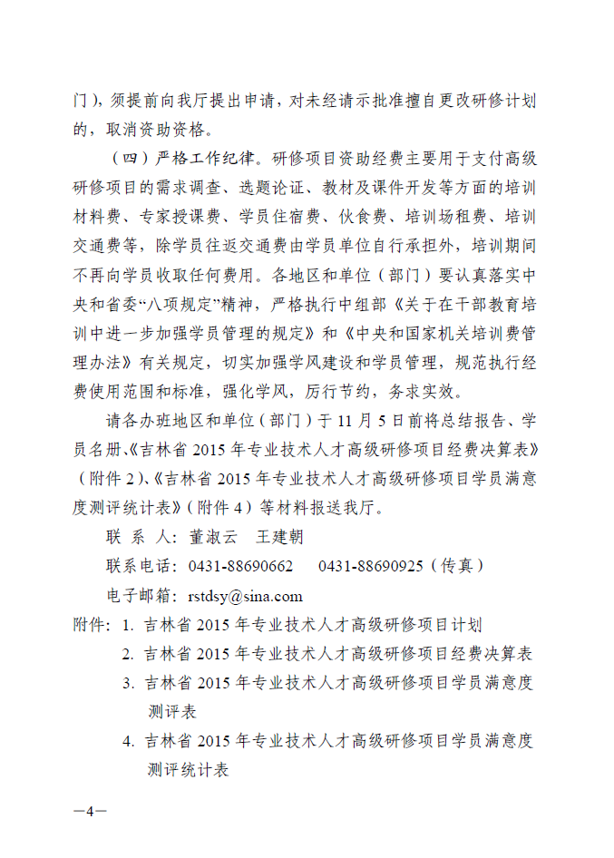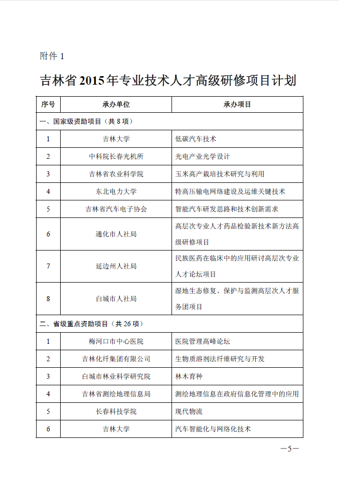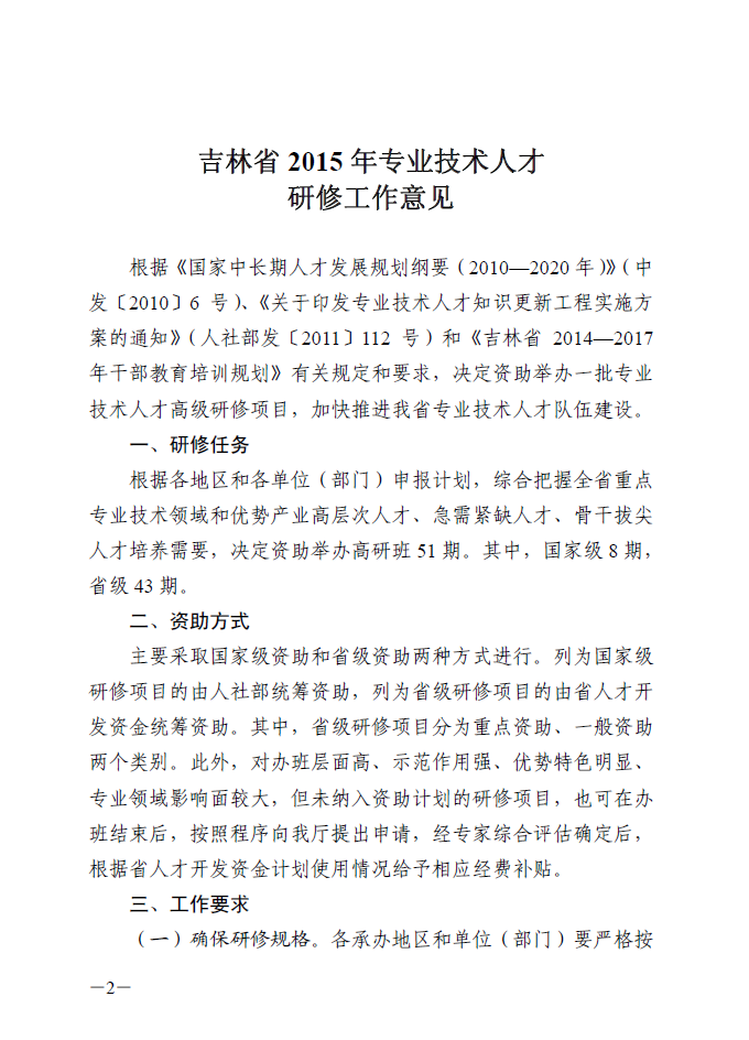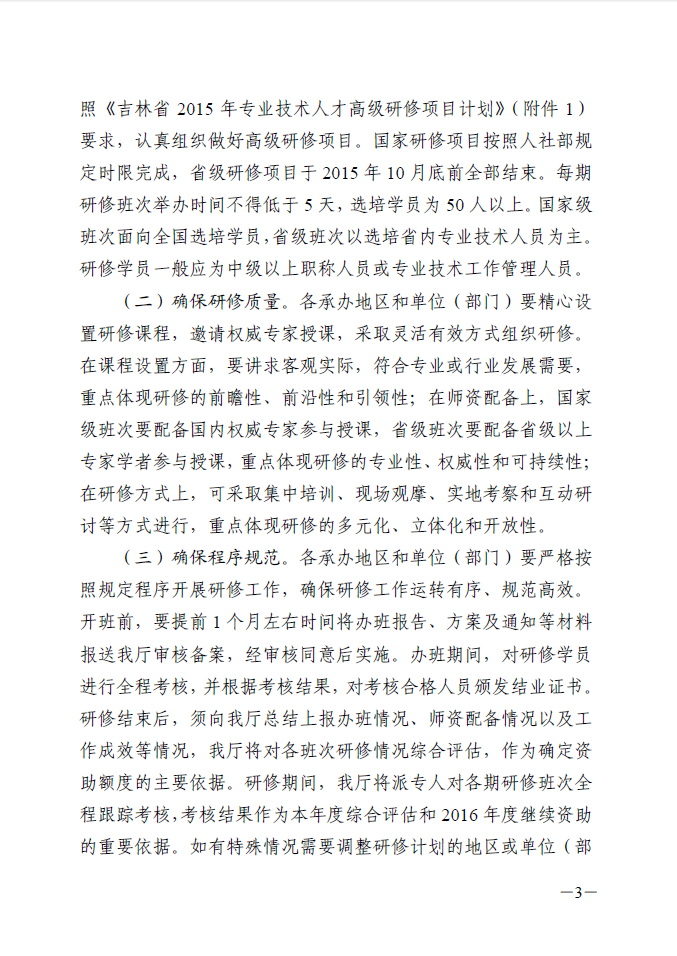 关于印发《吉林省2015年专业技术人才高级研修工作意见》的通知