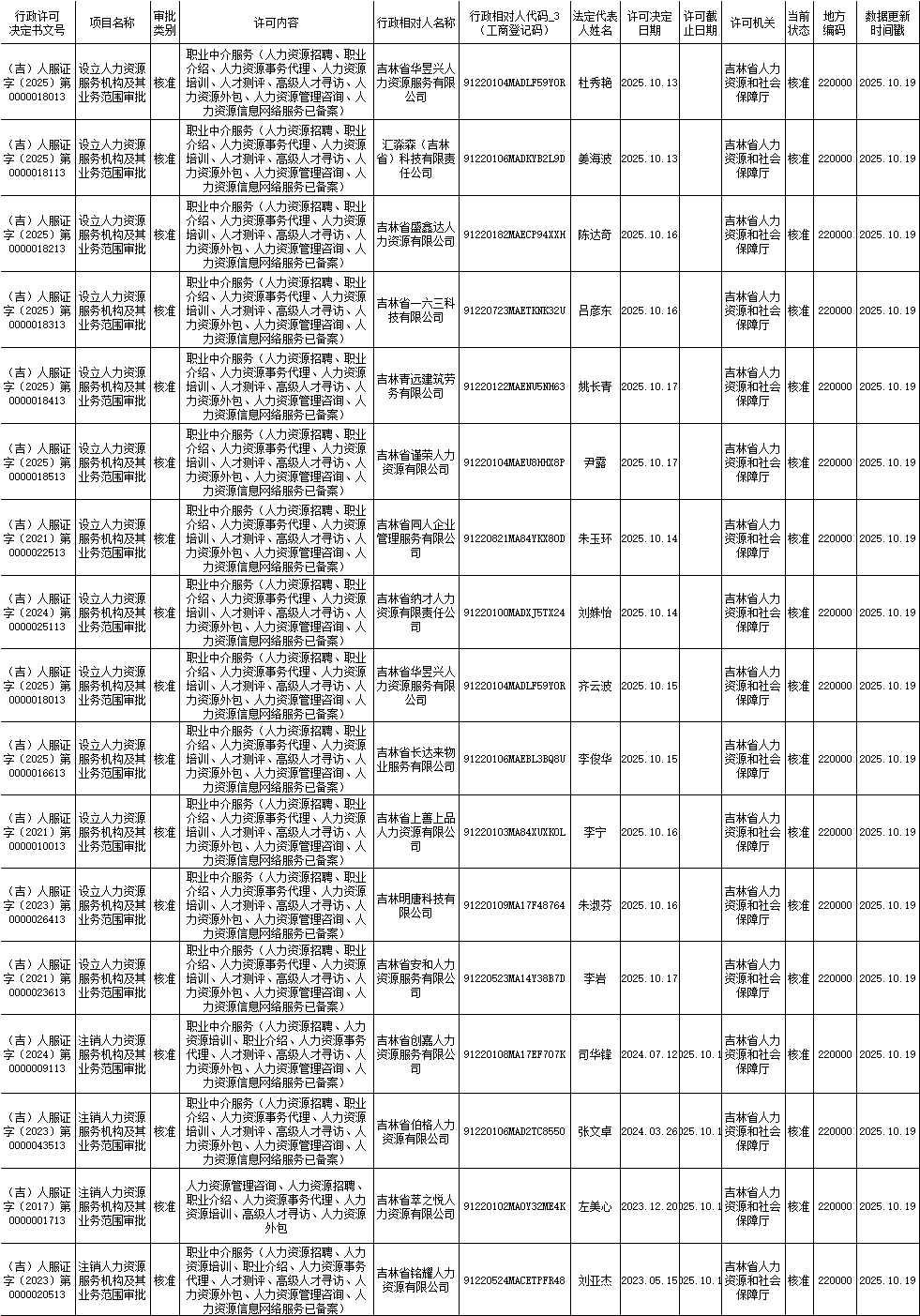 设立人力资源服务机构及其业务范围审批公示信息(2025年10月13日至2025年10月17日办理)