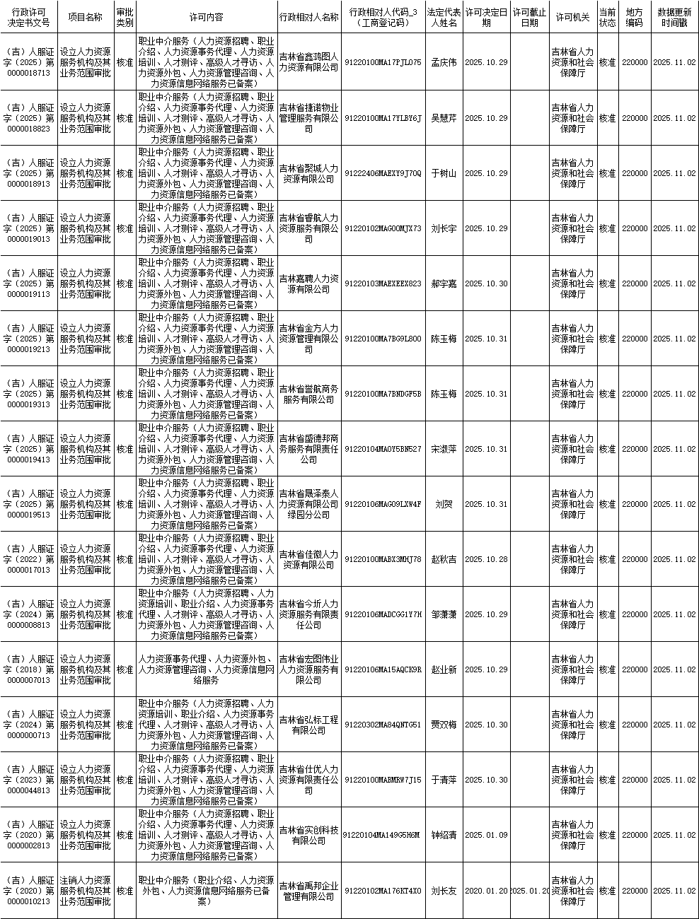 设立人力资源服务机构及其业务范围审批公示信息(2025年10月27日至2025年10月31日办理)