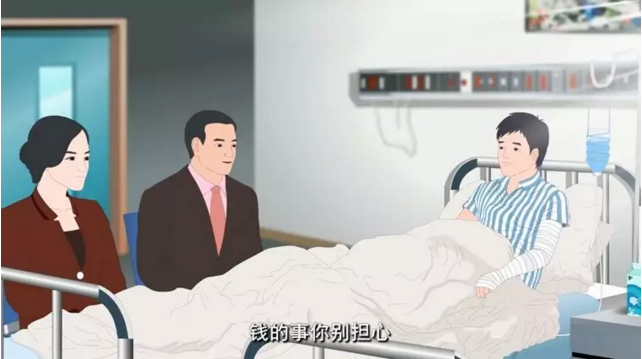 陈总对小强说:“小强啊,你在这儿好好养伤,钱的事你别担心,在医院的开支啊,公司都给你垫付了,因为你这个属于工伤,享受咱们市的工伤医疗待遇,等到你出院的那天,我派人过来把总的清单打出来,再拿去社会保险局报销就行了。”