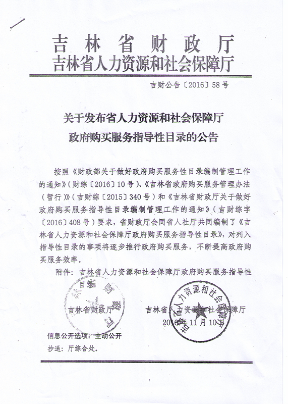 关于发布省人力资源和社会保障厅政府购买服务指导性目录的公告